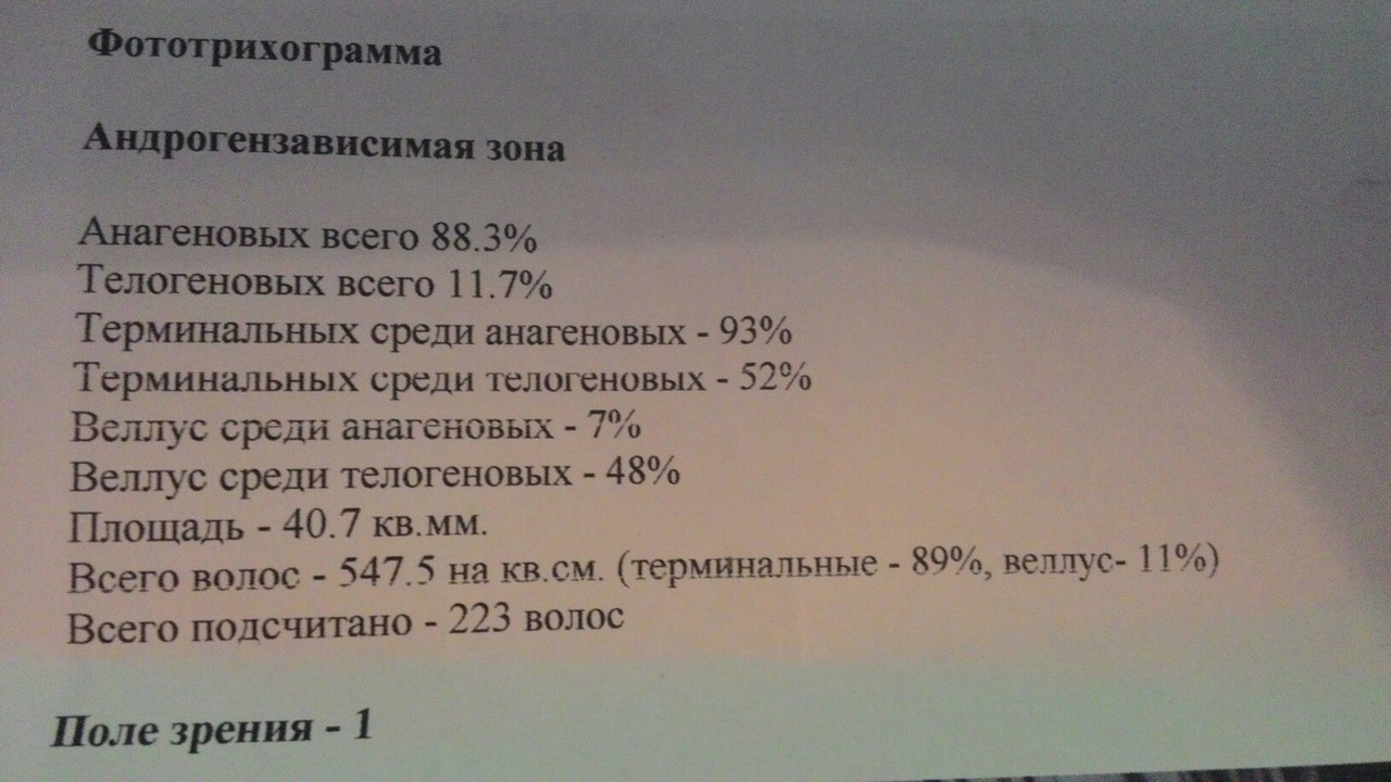 Это ФТГ было сделано в мае. Врач поставил диффузку, не смотря на веллус в телогене.