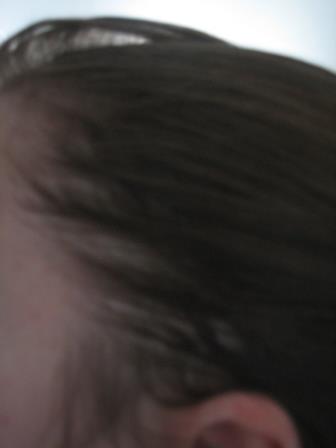 Фото - простите за качество (очень трудно себя снимать +вспышка все время) = не знаю правильно ли сделала, голова не свежая - на второй день после мытья (может, нужно сразу после мытья делать?).