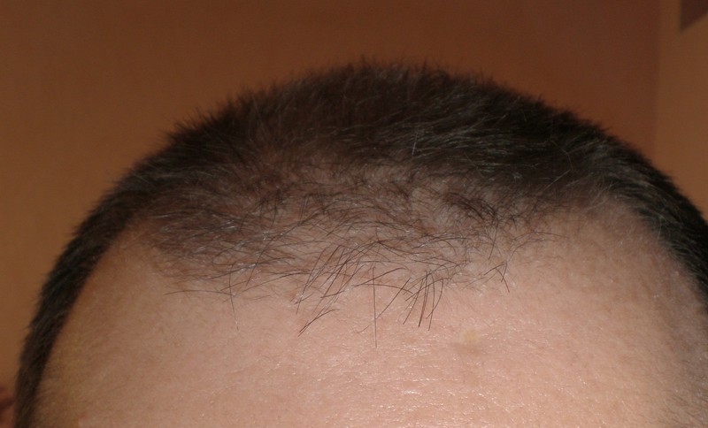Вот см. на фотке: Это неделя прошла после стрижки под 6 мм. Там где фотаю по касательной к поверхности головы видны четкие нормальные волосы и кажется что их много. Это потому что их толща не дает просвета. А вот ближе к бровям близкий к перпендикуляру угол съемки дает показать, что плотность волос недостаточная.