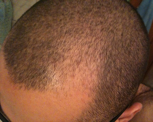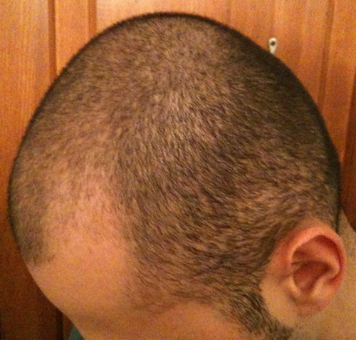 В Итоге за этот год сильно облысел. Стали виднеться залысины у висках и свехру головы волосы тоже начали рядеть. Пришлось постричься очень коротко 4 мм. а Потом и вовсе стал бриться станком 2 раза в неделю.