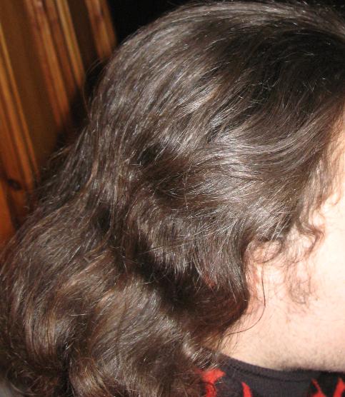 И через 2 дня, волосы пожирнели, слиплись.