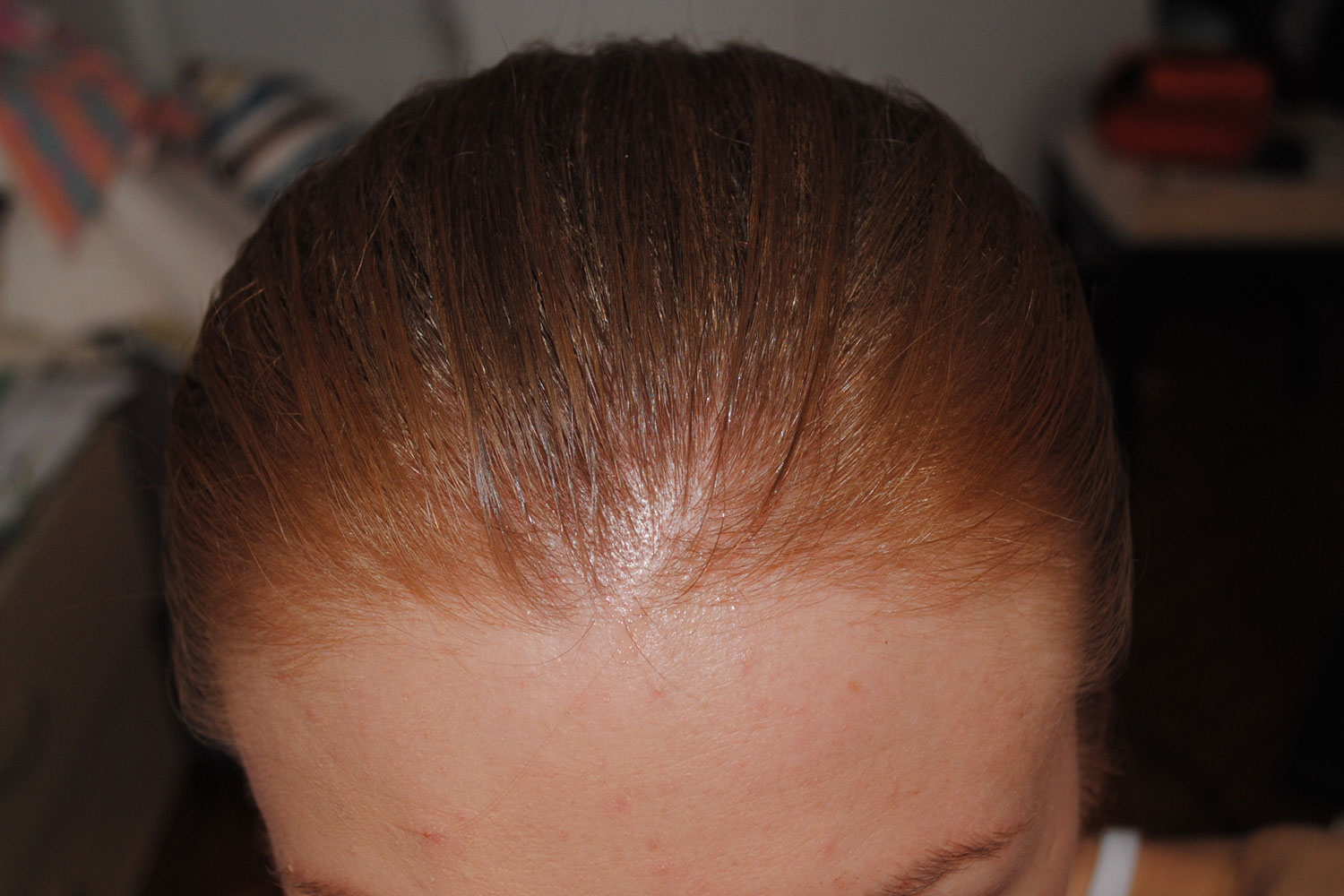 укороченные волосы у висках были всегда, смотрю детские фото короткие, и подростковые - голова не так светится , но реально поредение на лбу есть. сейчас на линии висков короткий пушок, на лбу волос чуть жоще, но тоже очень короткий. там где носила пробор у веска вообще 1-2 см сейчас. незнаю важно ли это но волос у висков у меня с годами все рыжее, остальные волосы каштановые.