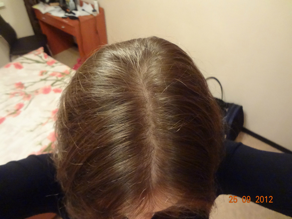 снизу вверх. Первая фотка- лоб, отсюда я и заметила впервые просвет. Вторая- так ношу пробор. Третья- середина пробора. Так не хожу никогда.