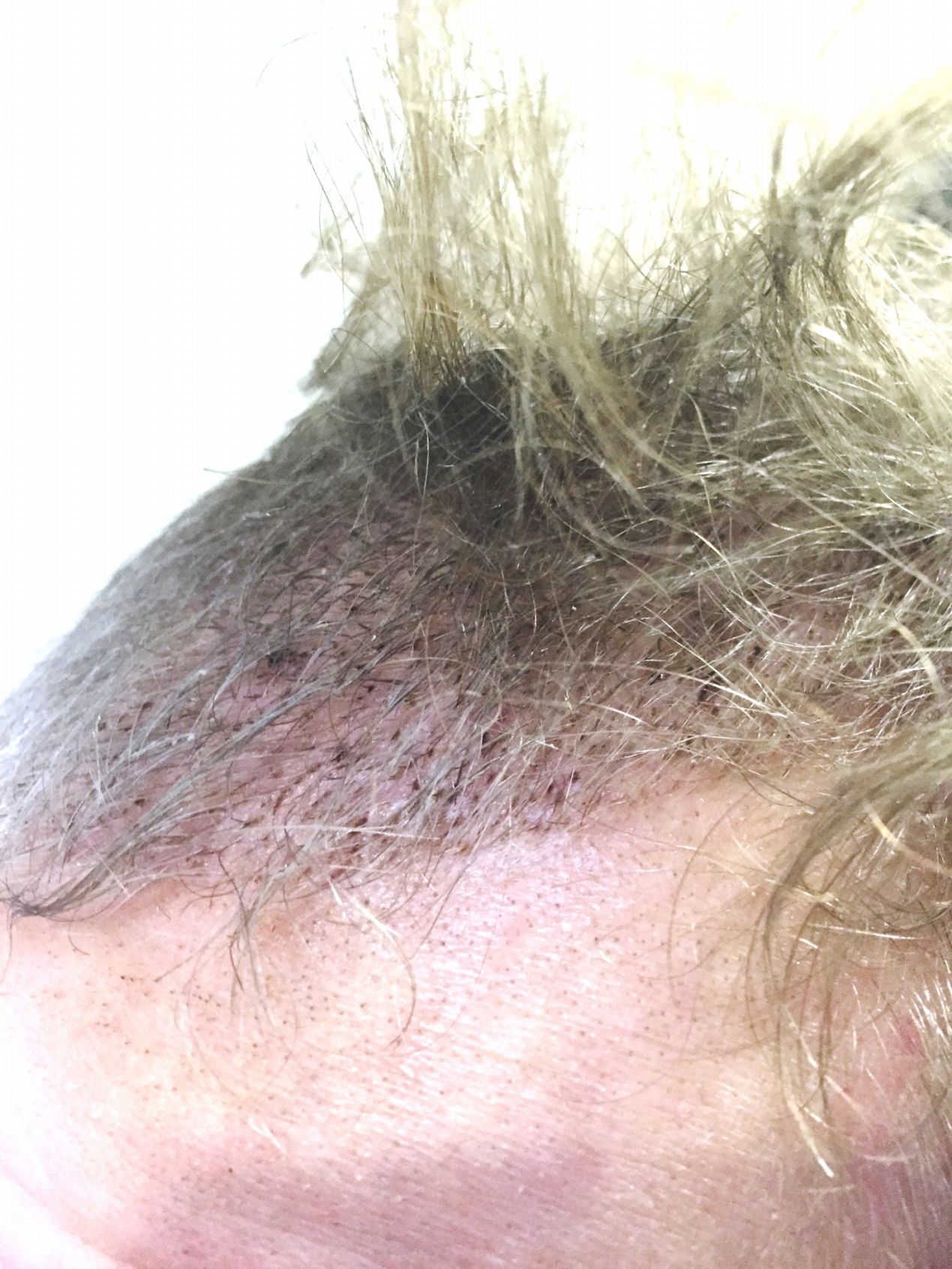 пока еще фото, 7 дней после операции, краснота почти спала, отеков не было вообще, ничего дополнительно не принимал, спал на шве (неудобно, но боялся, что поза набок затронет зону пересадки).